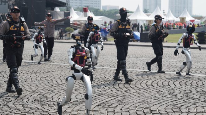Jakarta – Dalam rangka syukuran Hari Bhayangkara ke-79, Kepolisian Negara Republik Indonesia (Polri) memperkenalkan 25 unit robot humanoid dan robot anjing (K9) di kawasan Monumen Nasional, Jakarta. Kehadiran teknologi ini merupakan wujud komitmen Polri dalam modernisasi perangkat tugas untuk meningkatkan efisiensi, keselamatan personel, dan efektivitas pelayanan publik.