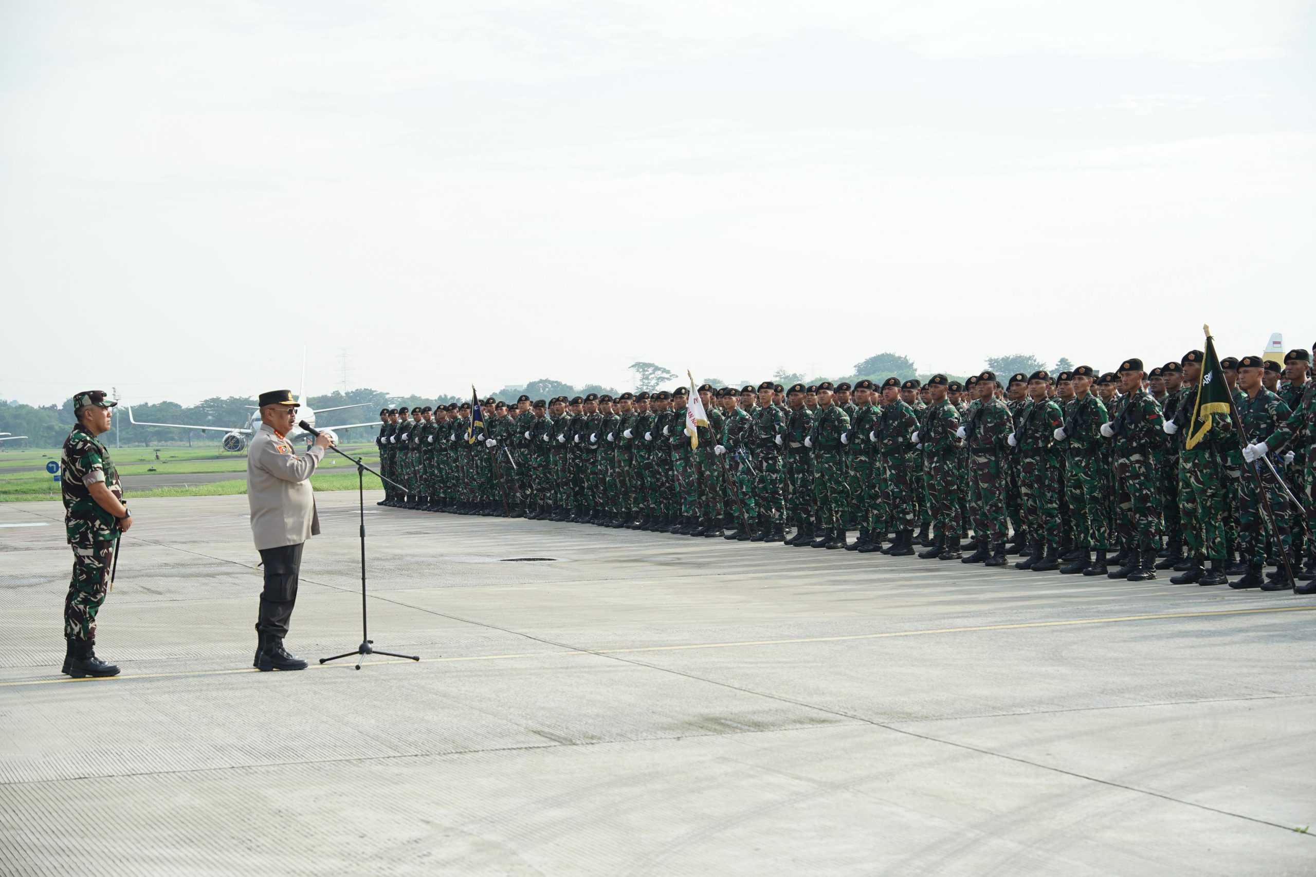 Jakarta – Kalemdiklat Polri, Komjen Pol. Prof. Dr. Chryshnanda Dwilaksana, M.Si., bersama Danjen Akademi TNI Letjen TNI R. Sidharta Wisnu Graha, S.E., melakukan pengecekan kesiapan pasukan perwakilan Indonesia yang akan mengikuti Parade dan Defile dalam rangka Hari Nasional Prancis (Bastille Day) di Pangkalan TNI AU Halim Perdanakusuma, Jakarta.