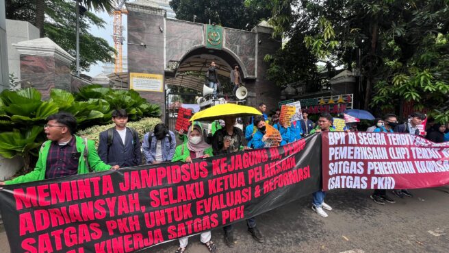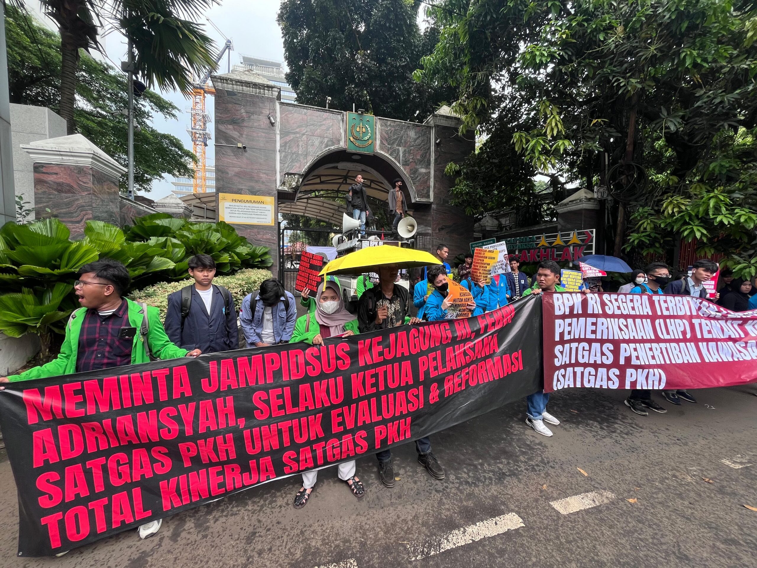 Dalam tuntutannya, massa aksi meminta Badan Pemeriksa Keuangan (BPK) segera melakukan audit menyeluruh terhadap kinerja Satgas PKH serta menerbitkan Laporan Hasil Pemeriksaan (LHP) sebagai bentuk akuntabilitas publik.