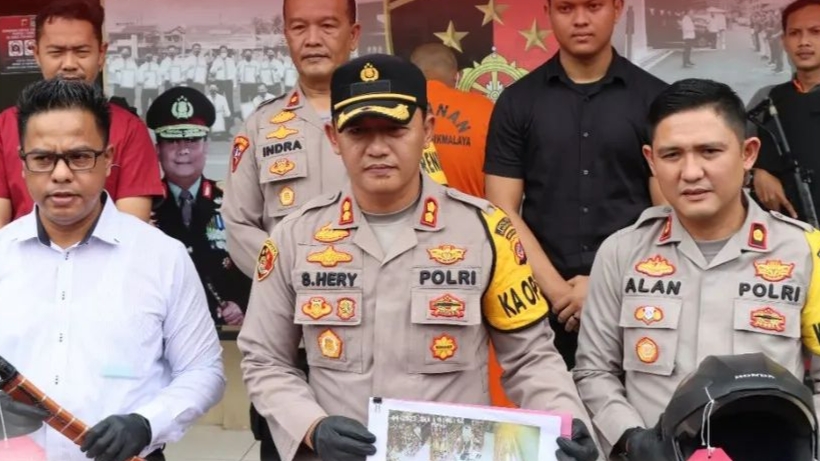 Kapolres Tasikmalaya Pimpin Konfrensi Pers Ungkap Kasus Tindak Pidana Perampokan Minimarket di Kecamatan Karangnunggal