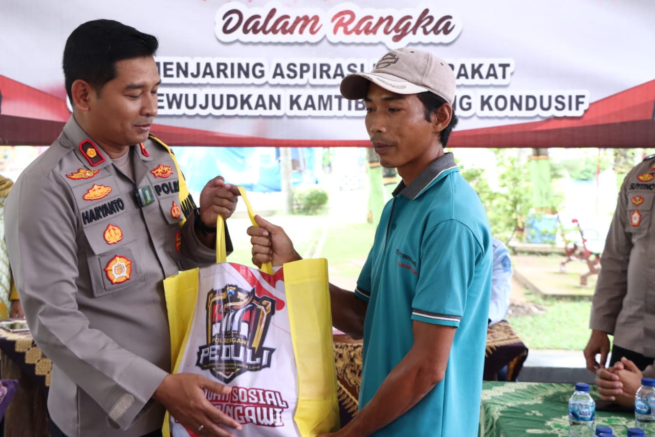 Polisi Peduli, Polres Ngawi Berbagi Paket Sembako di Jumat Curhat