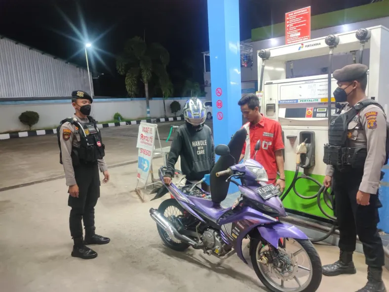 Sambangi SPBU, Sat Samapta Polres Kukar Beri Himbauan Terkait Keamanan Objek Vital