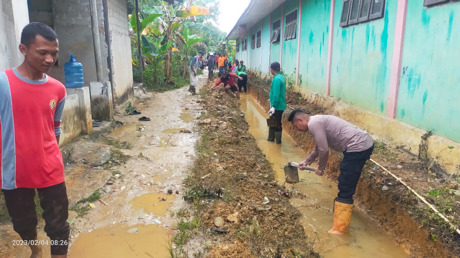 Jalin Kebersamaan, Bhabinkamtibmas Nipah Nipah Bersama Warga Gotong Royong Bersihkan Parit