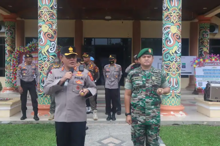 Kapolres Pimpin Apel Pengamanan Kegiatan Pengambilan Sumpah dan Pelantikan Kepala Desa Terpilih Periode Tahun 2023-2029 Kabupaten Paser