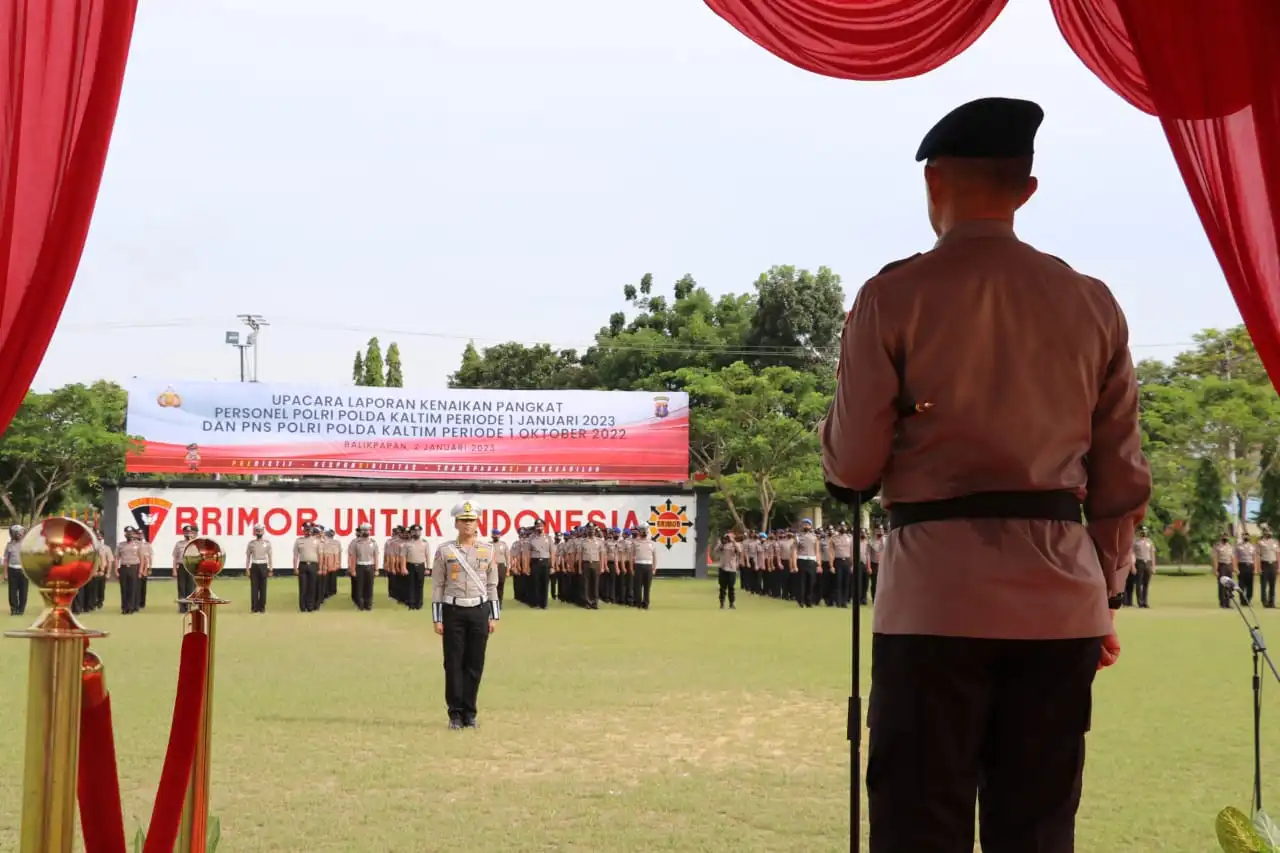 Kapolda Pimpin Upacara Korp Raport Kenaikan Pangkat 282 Personel Polda Kaltim
