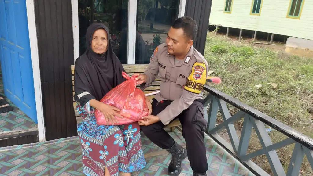 Wujud kepedulian Terhadap Sesama, Bhabinkamtibmas Polres Kukar Berikan Bantuan Sembako Kepada Warga Kurang Mampu