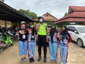 Lakukan Patroli Dialogis, Satlantas Polres Kukar Himbau Anak Sekolah Tentang Tertib Berlalu Lintas