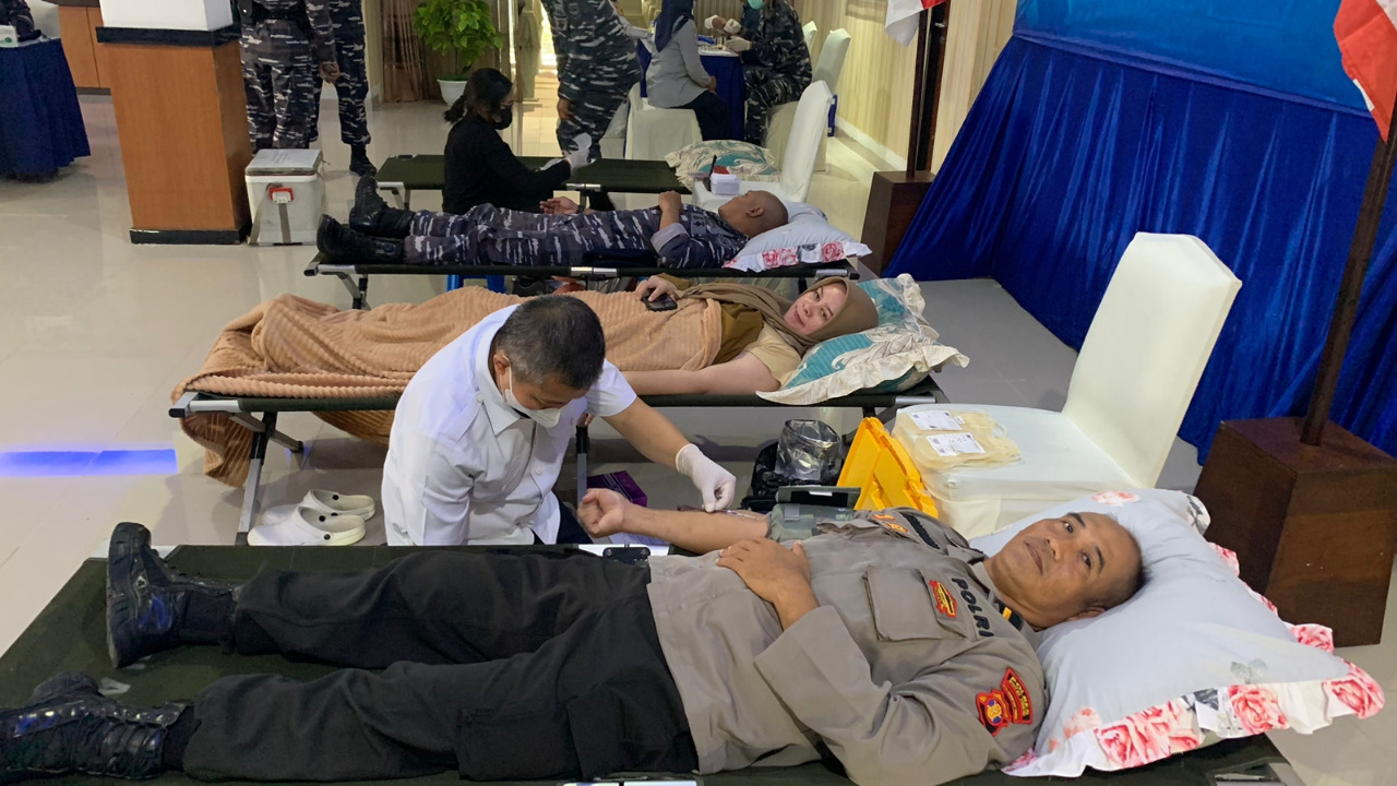 Dalam Rangka HUT POM AL Ke-77, Polres Kutim Ikuti Donor Darah di Mako Lanal Sanggata